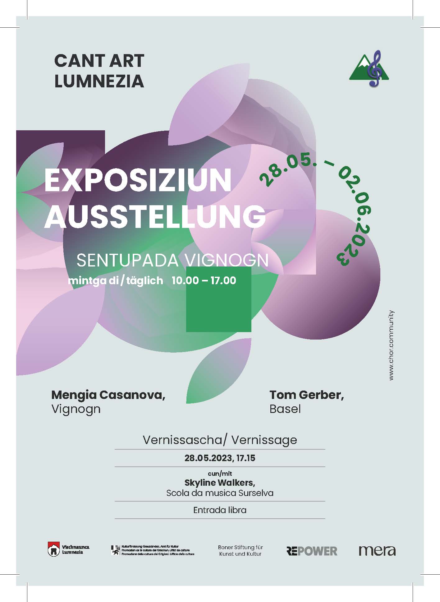 Im Jahr 2023 stammten die ausgestellten Kunst-Werke von Mengia Casanova, Vignogn. Ihre feinen Handarbeiten, in vielen Jahren gefertigt, wurden von SängerInnen und BesucherInnen gleichermaßen geschätzt. Dazu gesellten sich die Exponate vom Stecken-KünstlerTom Gerber aus Basel.